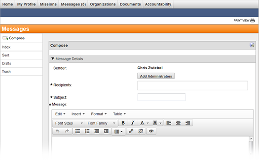 1. Go to the Messages tab and select the Compose side tab on the left. The following page opens.
